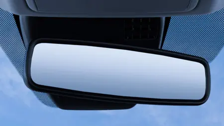 Kaca spion tengah dilengkapi dengan fitur auto-dimming yang secara otomatis mengurangi silau dari cahaya lampu kendaraan di belakang saat berkendara di malam hari.