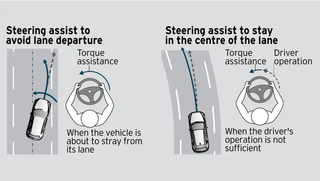 LAS bekerja bersamaan dengan LDWS untuk membantu pengemudi dengan memberikan kontrol kemudi otomatis agar kendaraan tetap berada di jalur. Jika sistem mendeteksi kendaraan keluar dari marka jalan, LAS akan menyesuaikan arah kemudi secara halus untuk mengembalikan kendaraan ke posisi semula.