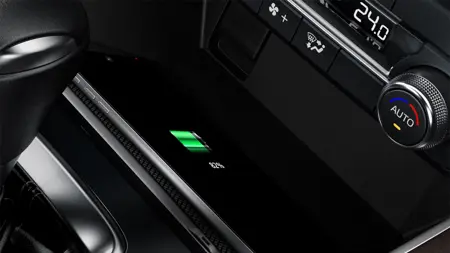 Baki pada konsol tengah dilengkapi dengan pengisi daya nirkabel Qi*, memungkinkan smartphone dan perangkat yang kompatibel untuk mengisi daya tanpa kabel saat mesin kendaraan menyala.